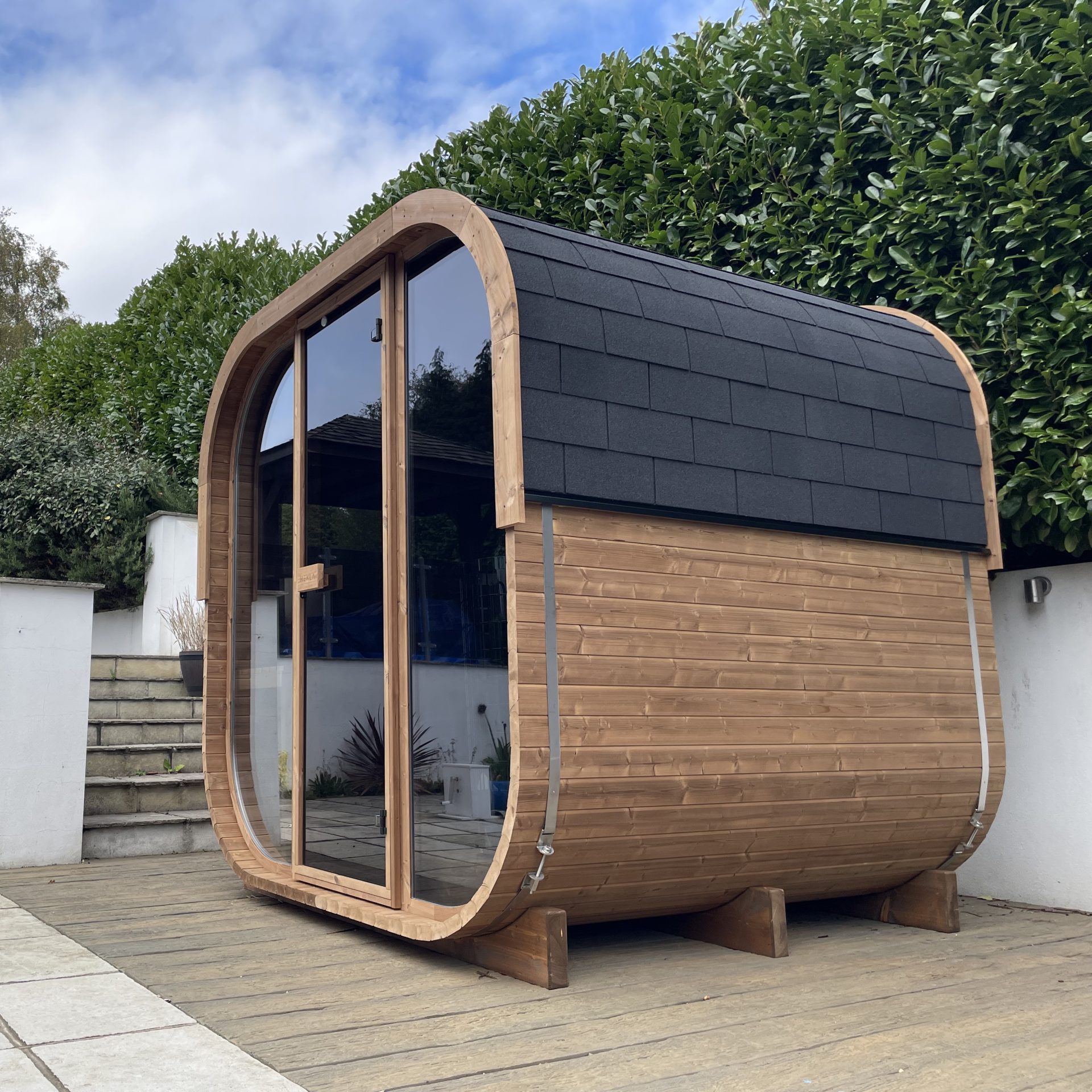The Base: You can’t just stick a Hekla Cube or Luksus on grass. You need a solid, level foundation—usually concrete or a heavy-duty reinforced deck. A good, solid, well-laid patio can work well, too. The most important aspect is that the surface is uniformly flat. If sections of your patio are in disrepair, or if a DIY concrete base should have been left to the experts, your sauna may not have the fit and finish you desire.